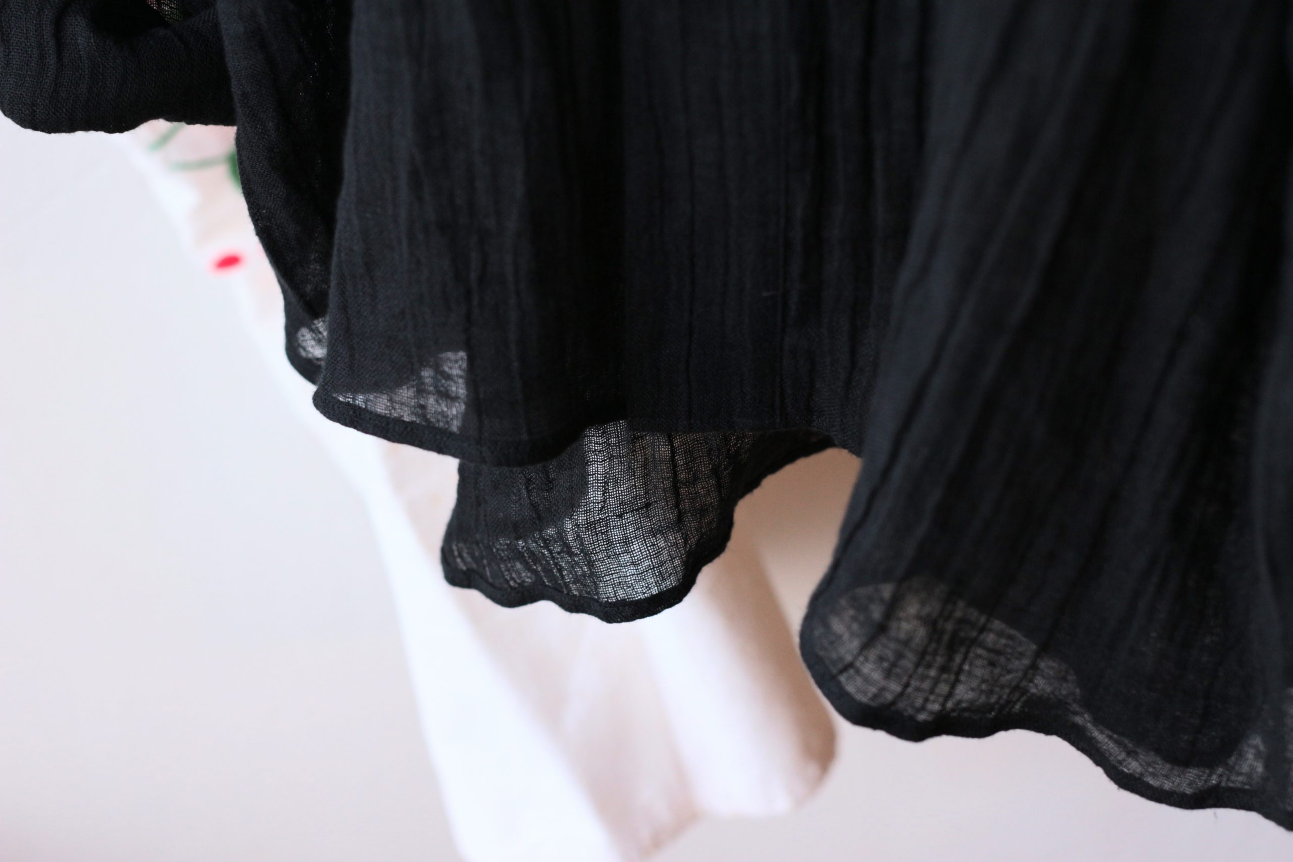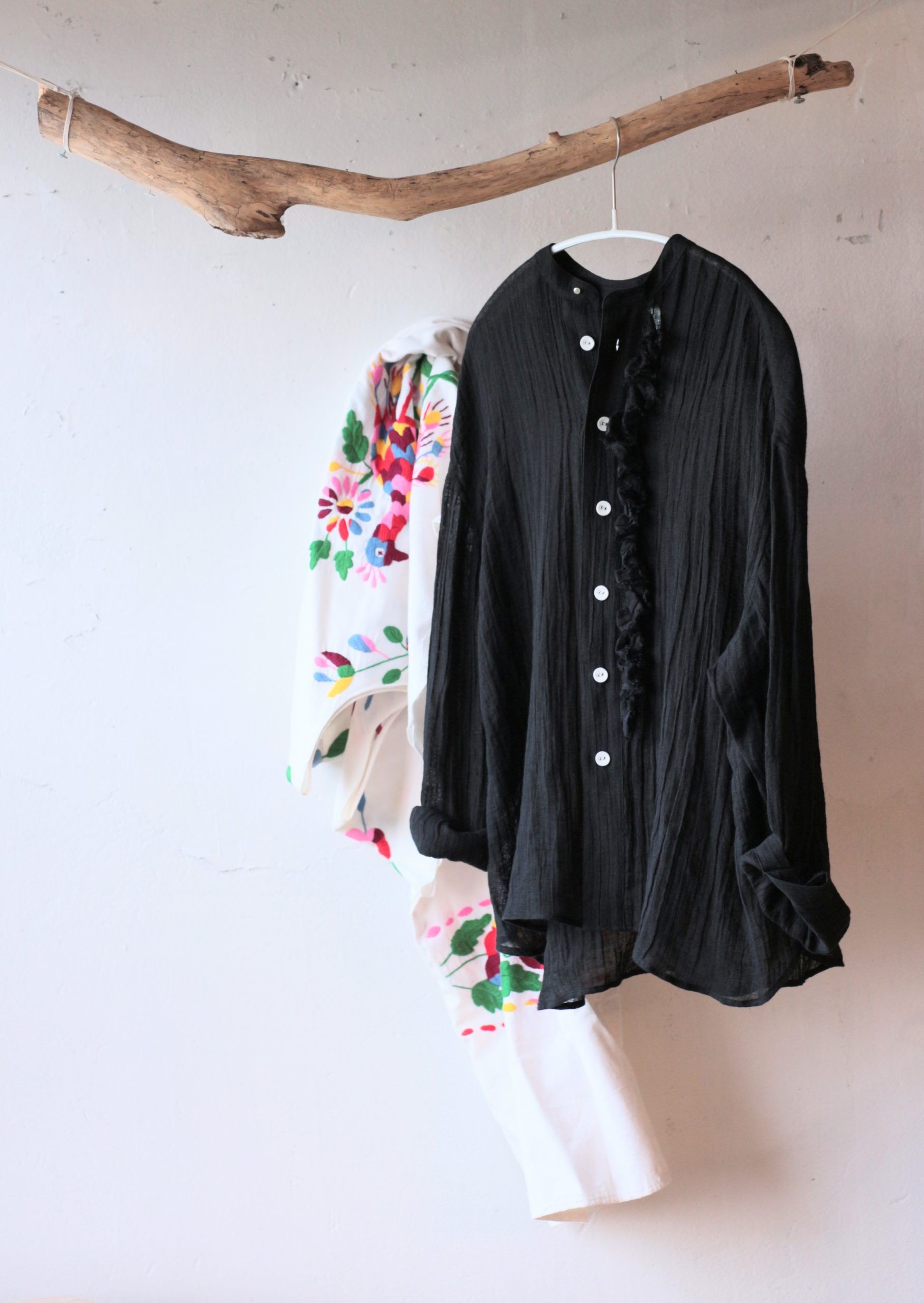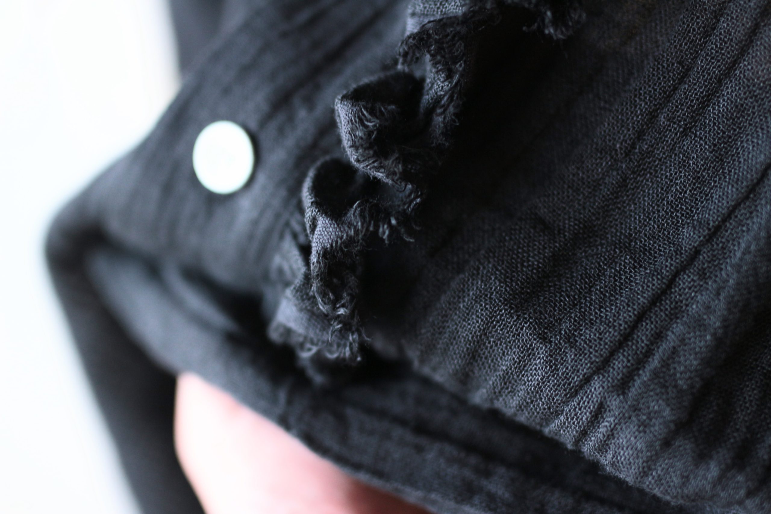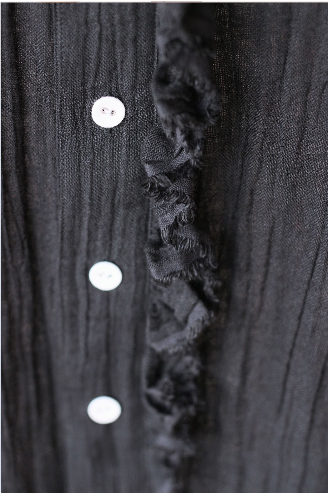 定番のフリルシャツショート・炭黒のリネンで仕立てました。