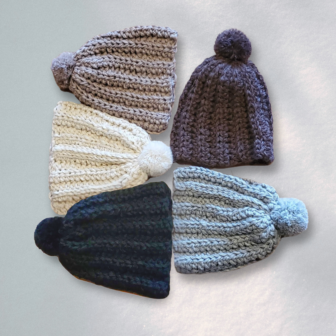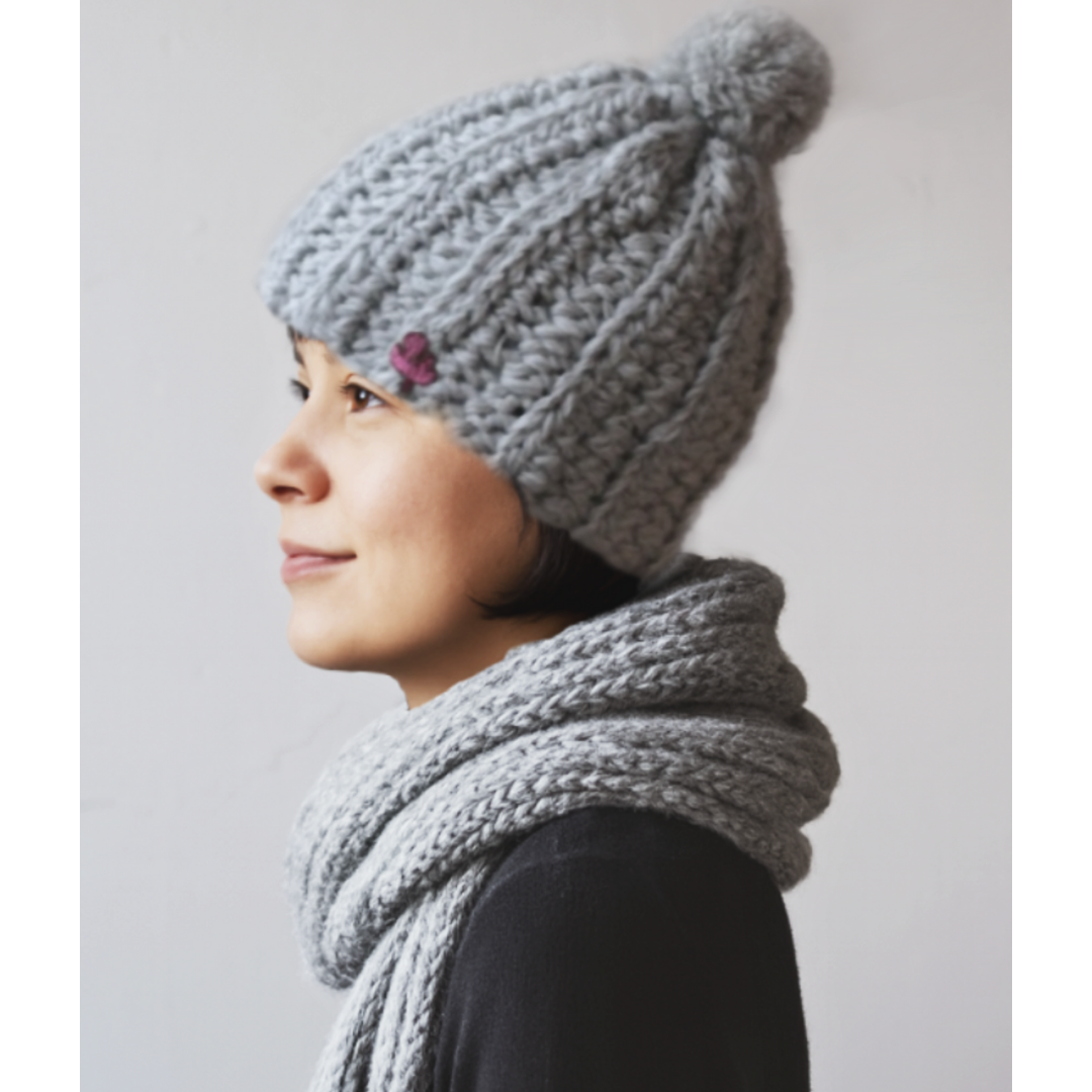 ザックリとフワッとした風合いに編み上げたニット帽です。