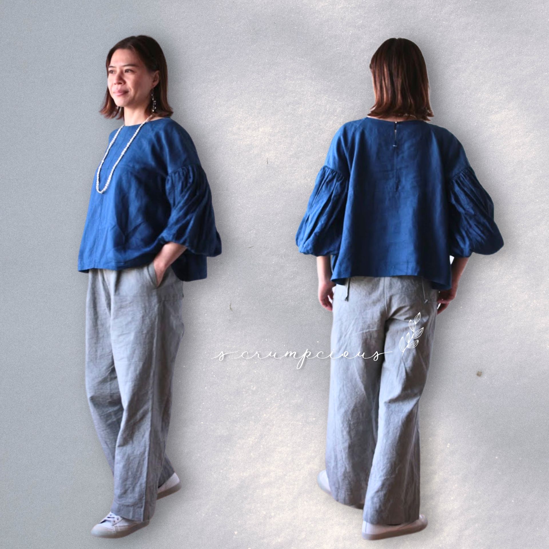 スタンダードチュニックのかたちから派生し、袖にぎゅうぎゅうと手仕事でギャザーを寄せた、オリジナルのデザイン。